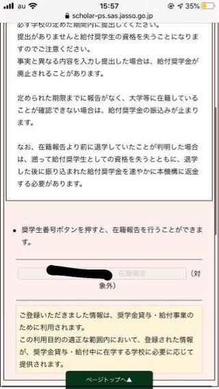 奨学金の給付金のスカラネット パーソナルで在籍報告をしたいのですがこれが出る Yahoo 知恵袋