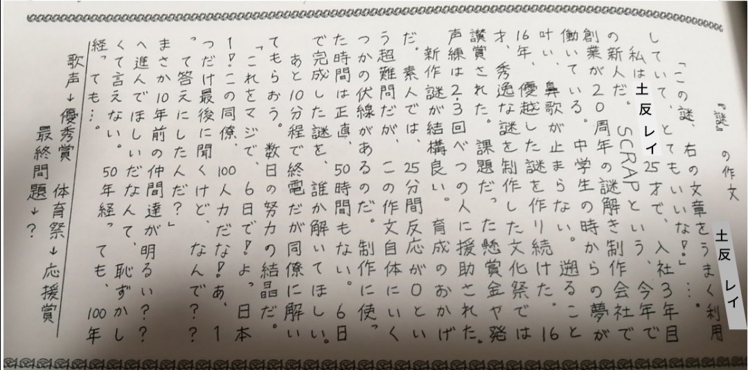 土反レイ Auf Twitter 中学生 15歳 の時の卒業文集です あなたは この違和感だらけの作文に隠された全ての謎を解き明かす事が出来るでしょうか 卒業文集 謎解き 解けたらrt