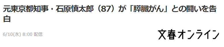 石原慎太郎 自曝患胰腺癌